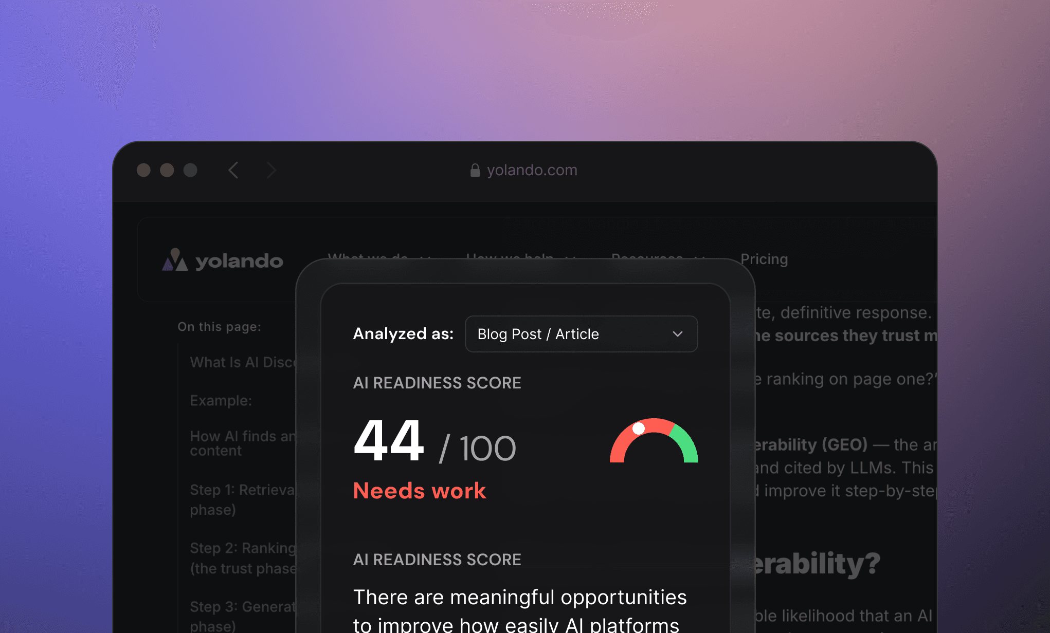Use tools like Yolando's free content audit Chrome extension to identify SERP features and audit pages for content gaps, ensuring you address the specific queries triggering AI overviews. Tools with features designed to analyze "zero-click" opportunities allow you to see your content through the eyes of the model. Automated audits can instantly highlight missing schema, poor header hierarchy, or low readability scores that might be invisible to a human editor.